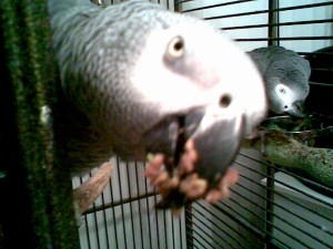 I would then proceed to toast some whole grain bread, spread peanut butter sprinkled with a fresh, fine ground veggie mix on it and slap it into the bowls mounted on their play stands. My birds love these mornings because they love toast. They pick up the piece of toast in their feet while they delicately and joyfully crunch away. It is truly hilarious to watch. But then I would feel guilty because I was a lazy caregiver. To me, if they were human, it would have been like handing them one of those microwave breakfast sandwiches to your kid. (Oh my God! They didn’t get their broccoli! No flax seed oil! I forgot about their calcium supplement! I am a horrible person!)