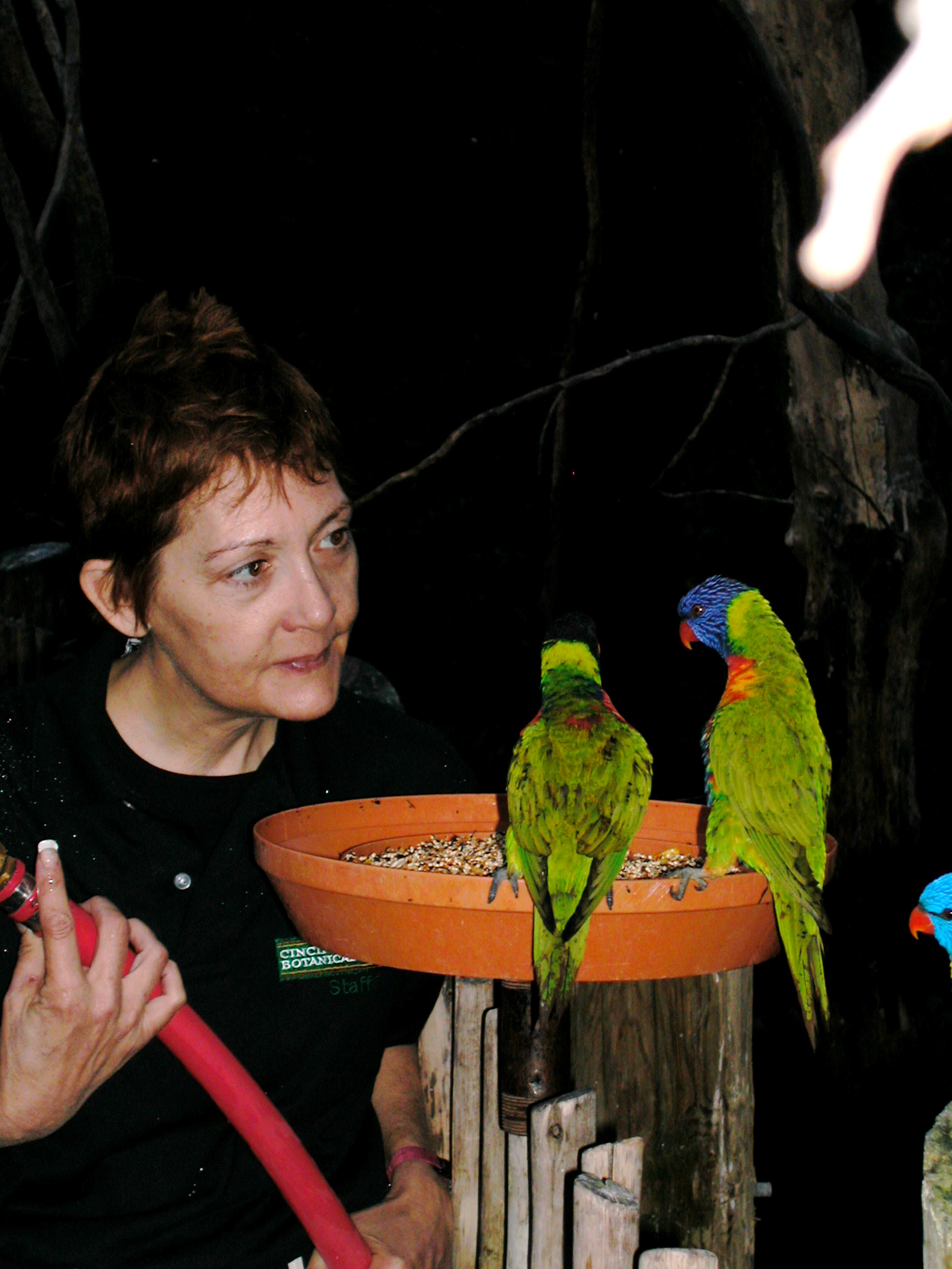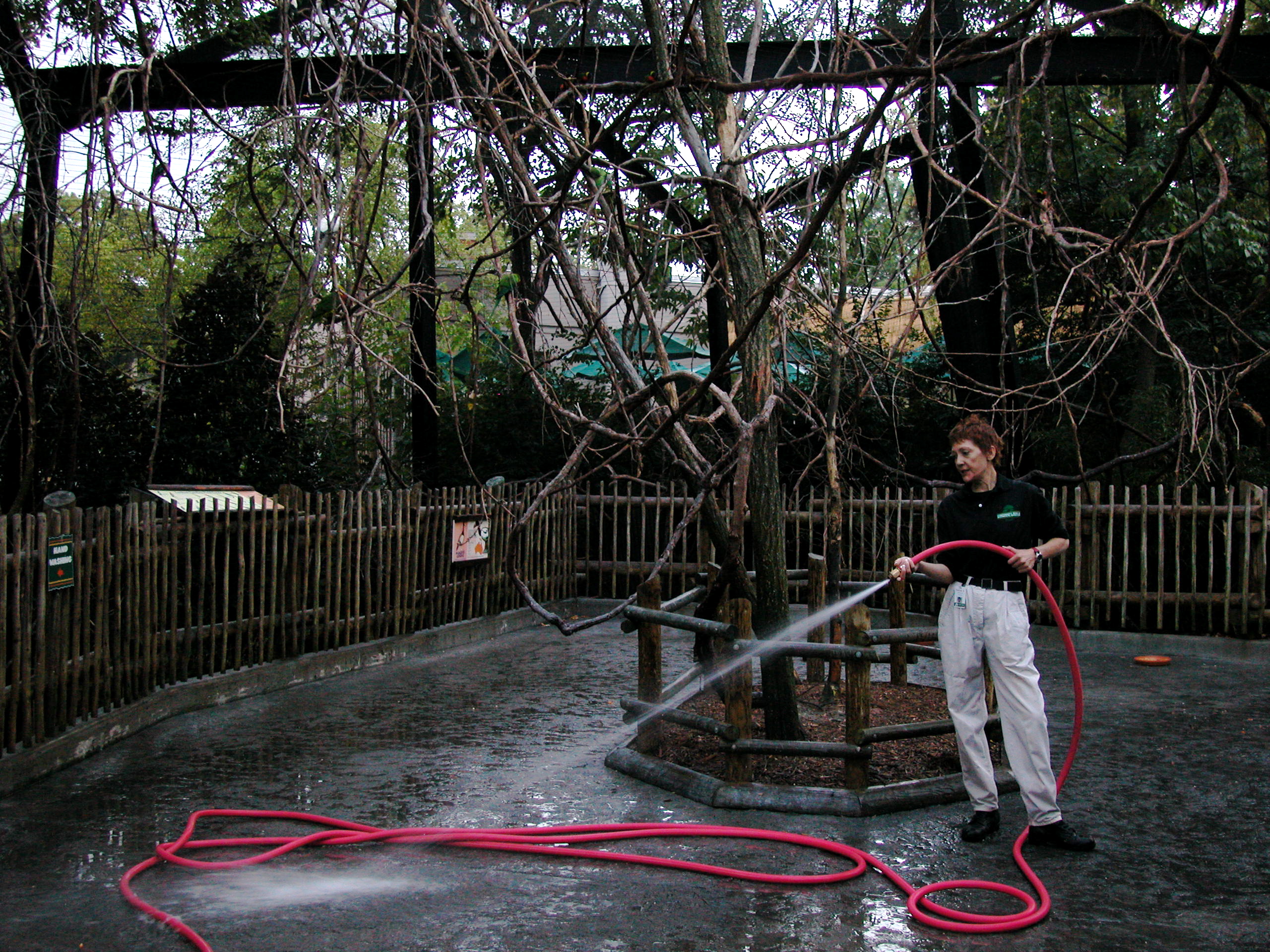 (Hosing down the Lorikeet Exhibit and saying good morning to a couple of the local chow-hounds.)