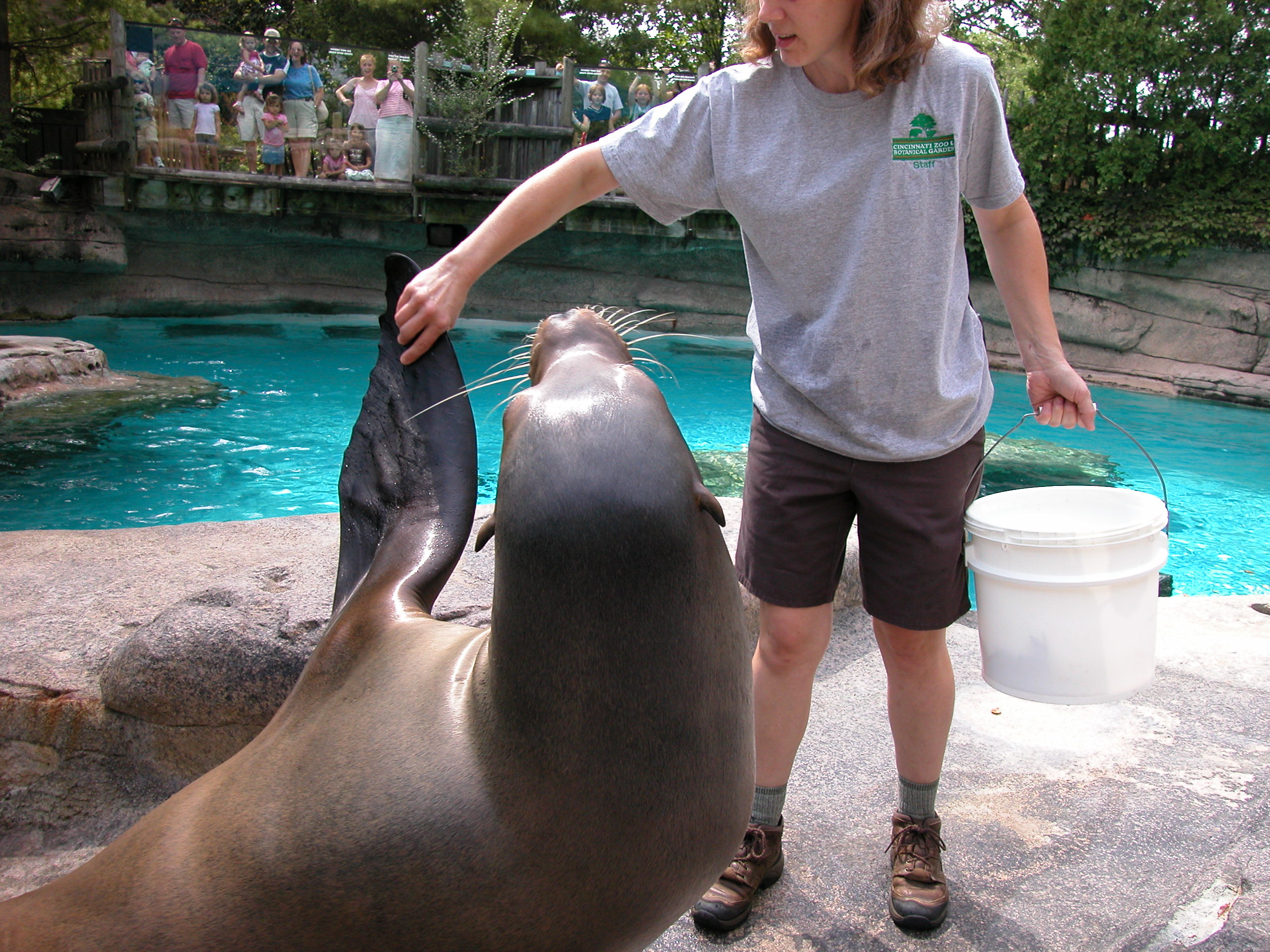 Today has not been a day mired in poop. (The day’s not over yet…) However, yesterday I got “gassed on” by a Sea Lion. I was being introduced to Duke, one of the favorite animals and quite a charismatic character. He was taking a break on the ledge not a foot from me and he passed gas in my general direction. You have to understand that Duke is a big guy:
