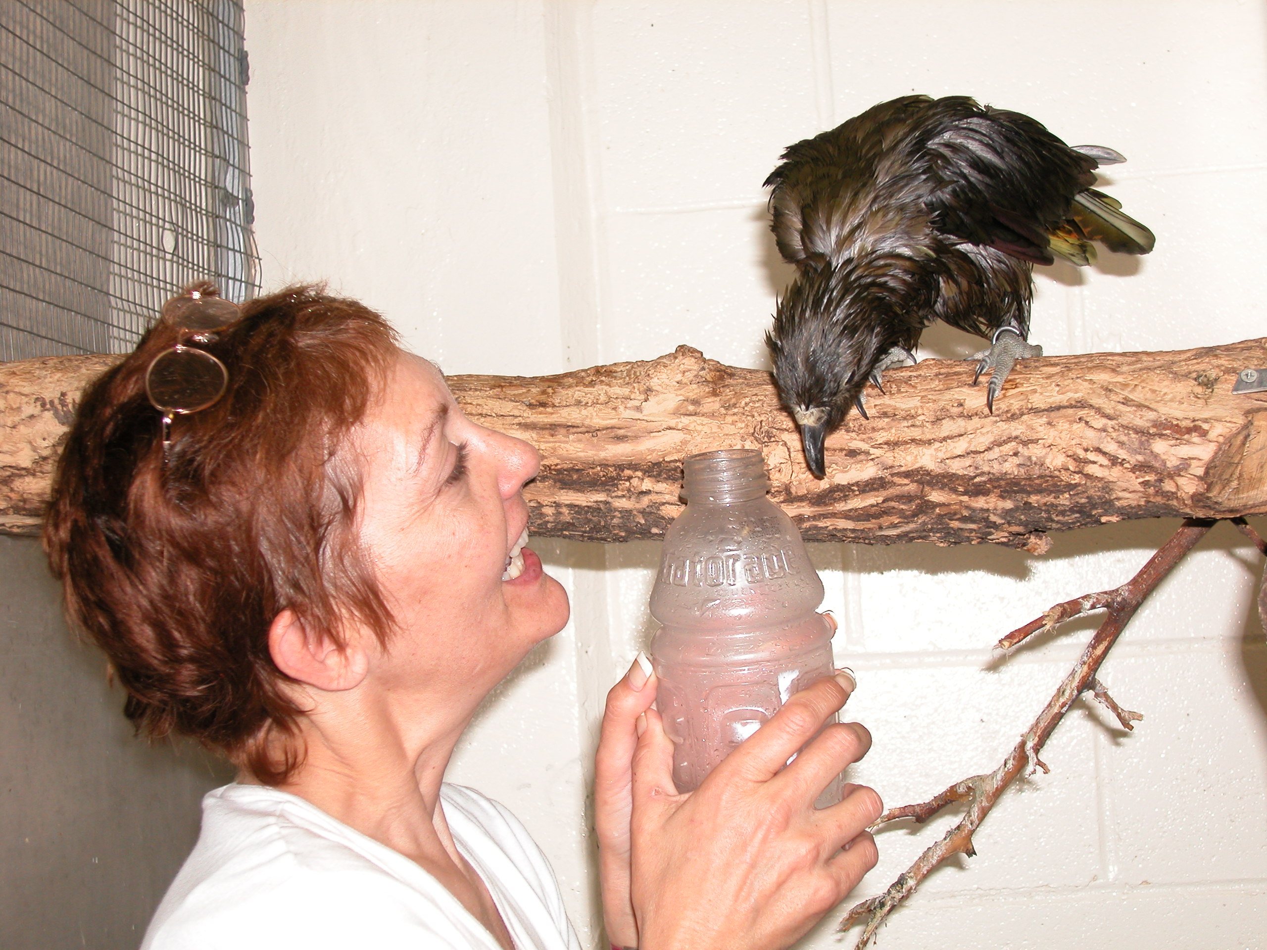 This Kea Just had a bath. But I was wet as well from the cleaning her enclosure.
