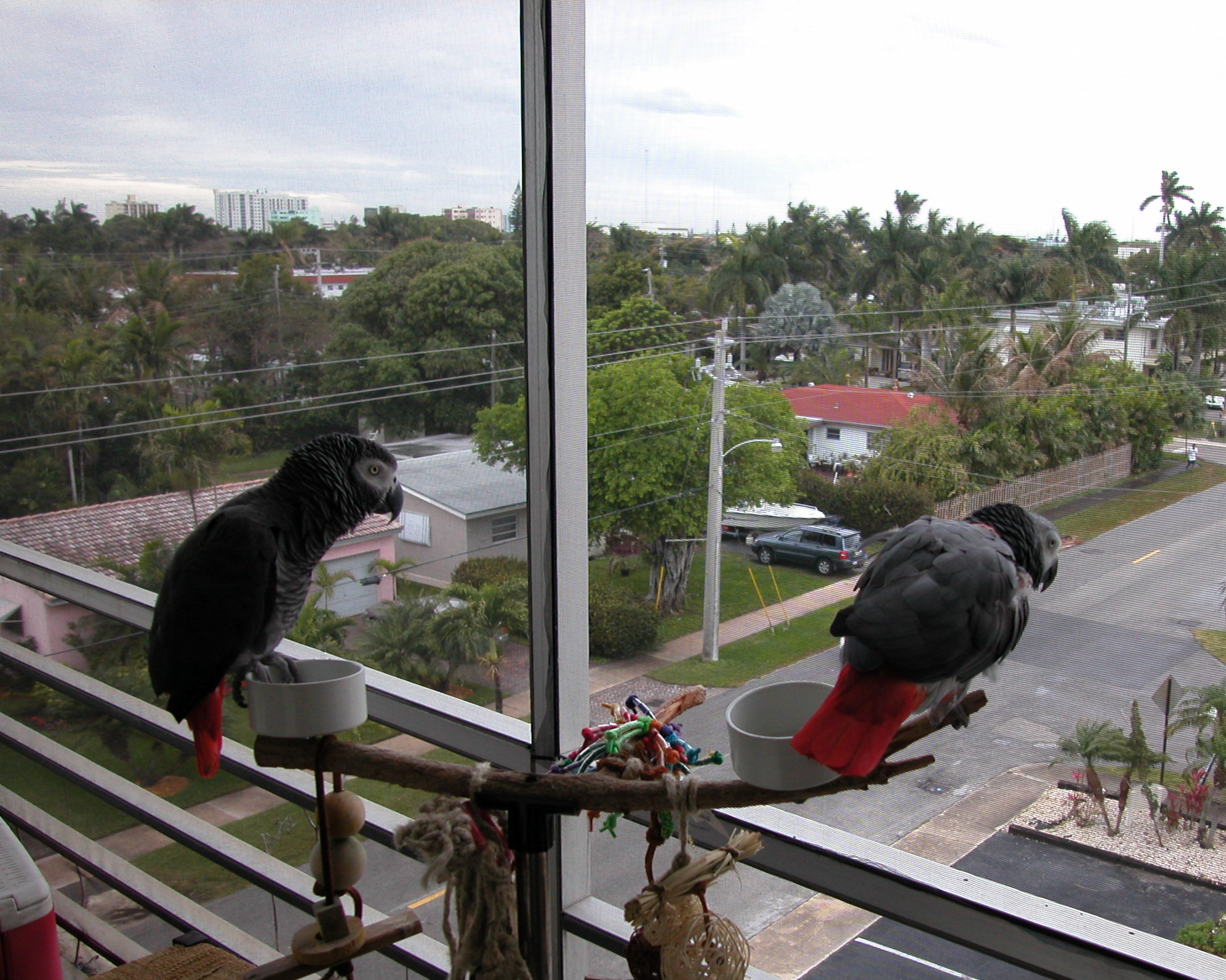No wonder your Greys prefered to stay on their gym and watch the world outside the window. What a nice view they have.