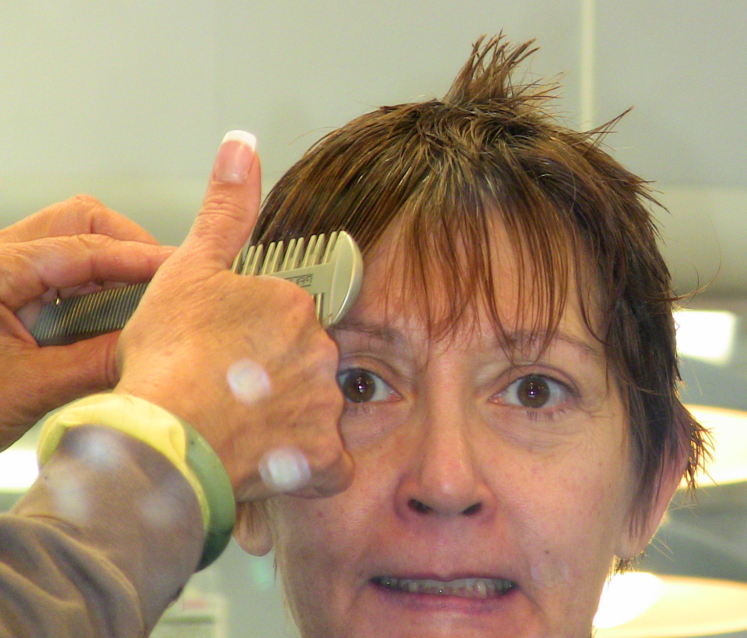 Probably not, she’s probably just trying to get at that cow lick. But this part always makes me nervous: