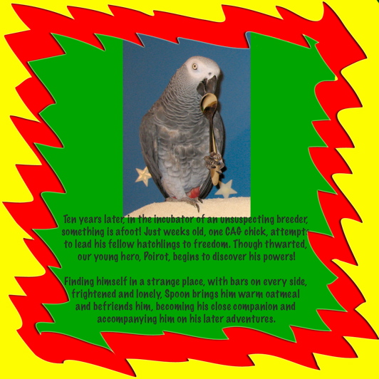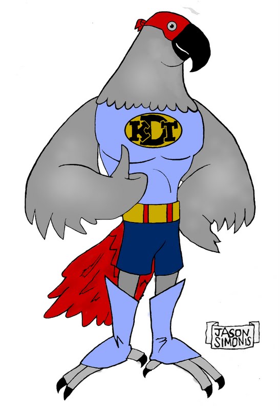 This was sent to me from Pam Tomlinson from “Kids Defense Team.” She has a wonderful illustration of her Superhero. Talk about a muscular African Grey Superhero Dude! This guy named “Taboo” is seriously huge. Love the mask and the boots! Thanks Pam for a fabulous entry. And what a Super cause!