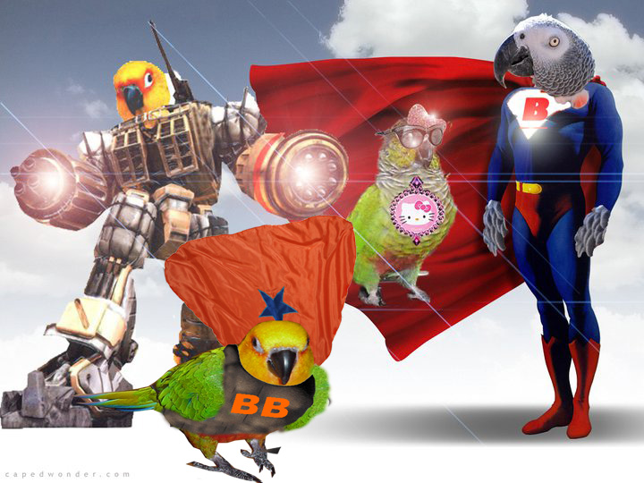 3.) Write a description of our parrot hero including his “Superhero” name. If you can cobble together a photograph of your own “Superhero Bird” using photoshop, all the better! A drawing or other medium would work. Can’t do photoshop but like play-dough? Have at it! Creating some sort of visual would go a long way in securing the win. (By the way, we here at “PN” love capes!) But I’m really going for a great backstory. Where is he or she from? What is their “Credo.”How did he get his superpowers? Does he have a sidekick like Batman has Robin? Superman and Krypto? The Green Hornet and Kato?