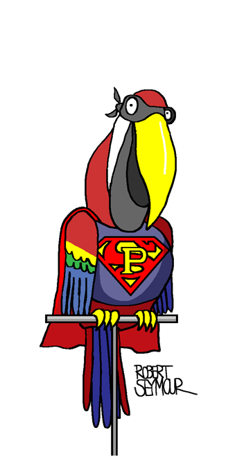 Cartoonist Robert Seymour has graced the “Parrot Nation” pages with his work. Robert has a fabulous cartoon strip called “Bird Breath.” It’s absolutely brilliant, funny, yet dead-on with its honesty and poignancy. Robert offers this amazing contribution with wonderful art and with true “Superhero” attributes! Loving Robert’s work as usual!
