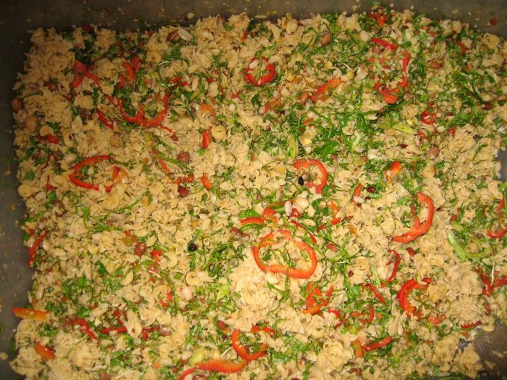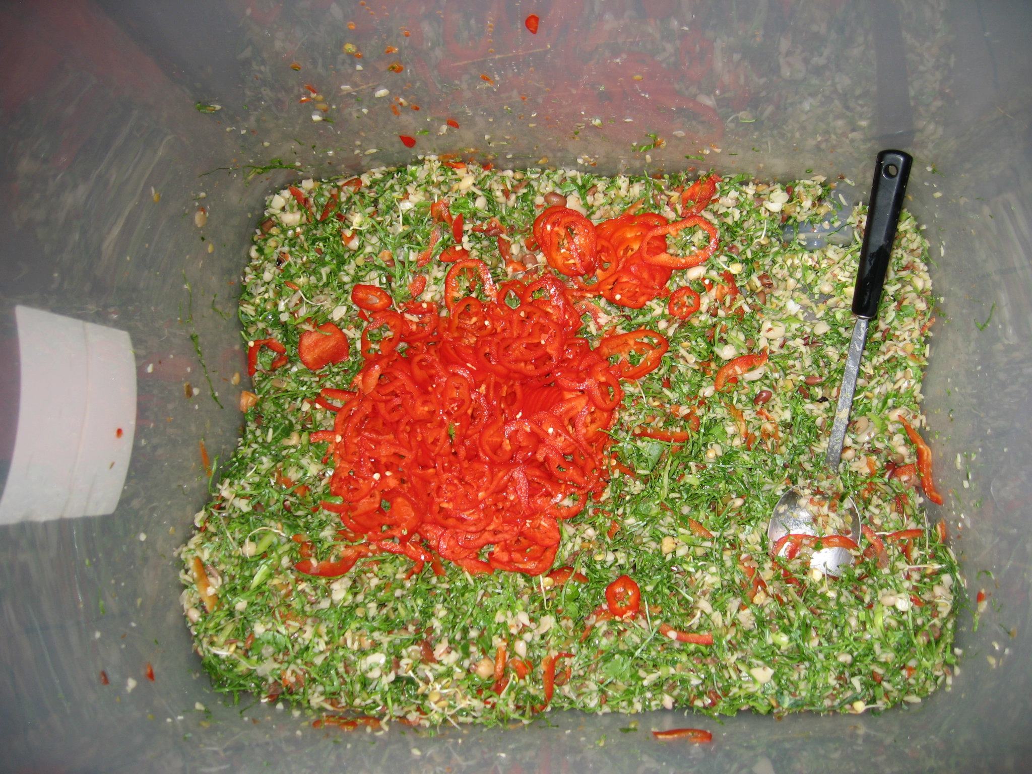 Bob did some research and settled on making Chop for his crew. The results were astounding as you will see. Bob made about 20 pounds which, even with his crew of jetliner birds, will last for quite a while. Bob chose a nice array of vegetables that seemed to work well together in terms of color and nutrition balance. He also chose to add beans right in with his Chop instead of making a separate bean mix which is just fine.