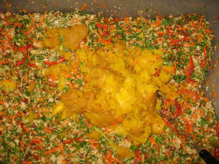 Bob also did something I used to do and is still a good alternative if you like what you see. He used 2 five pound bags of mixed frozen vegetables. He used cinnamon as a spice which works with the pumpkin addition: