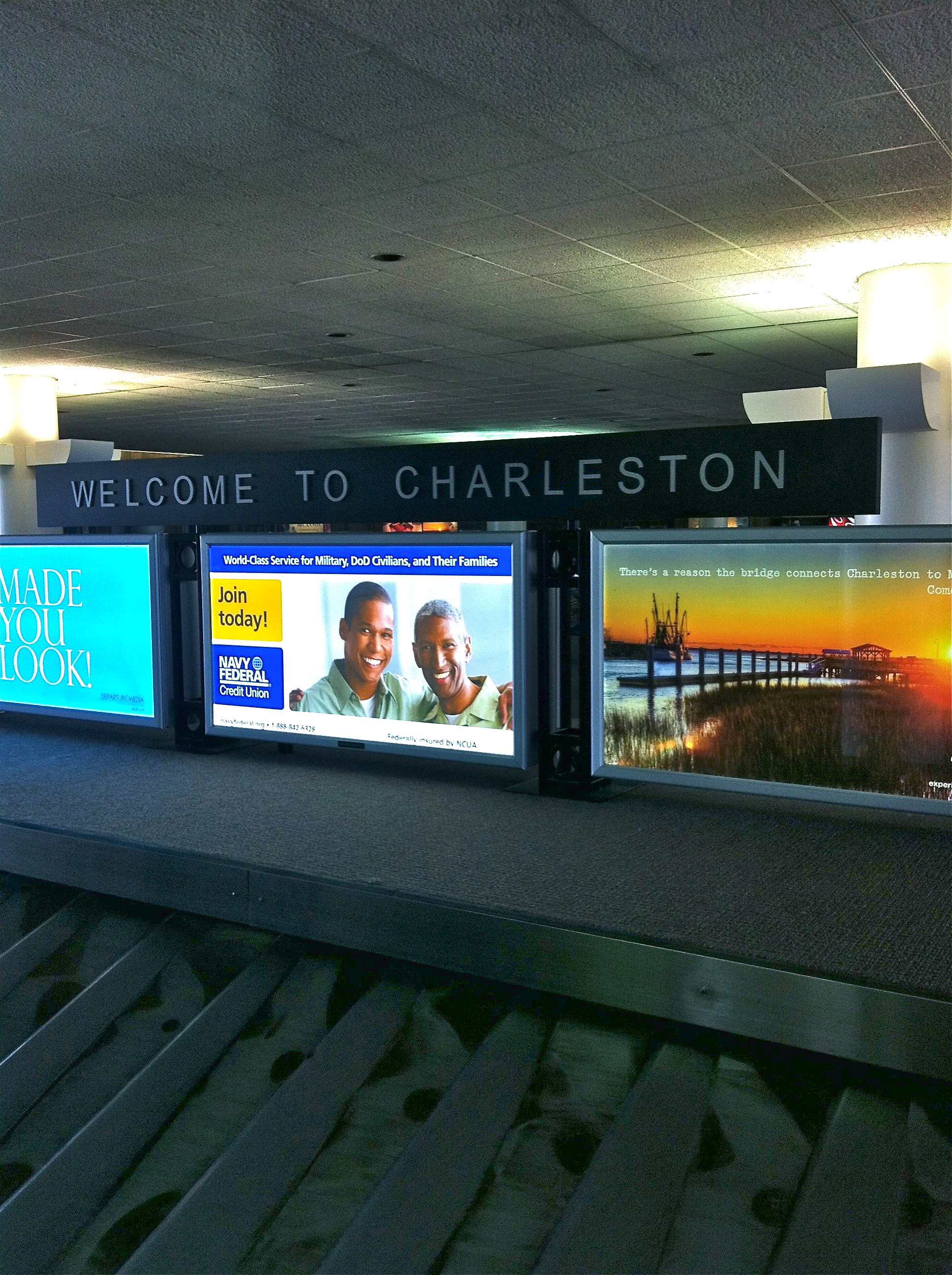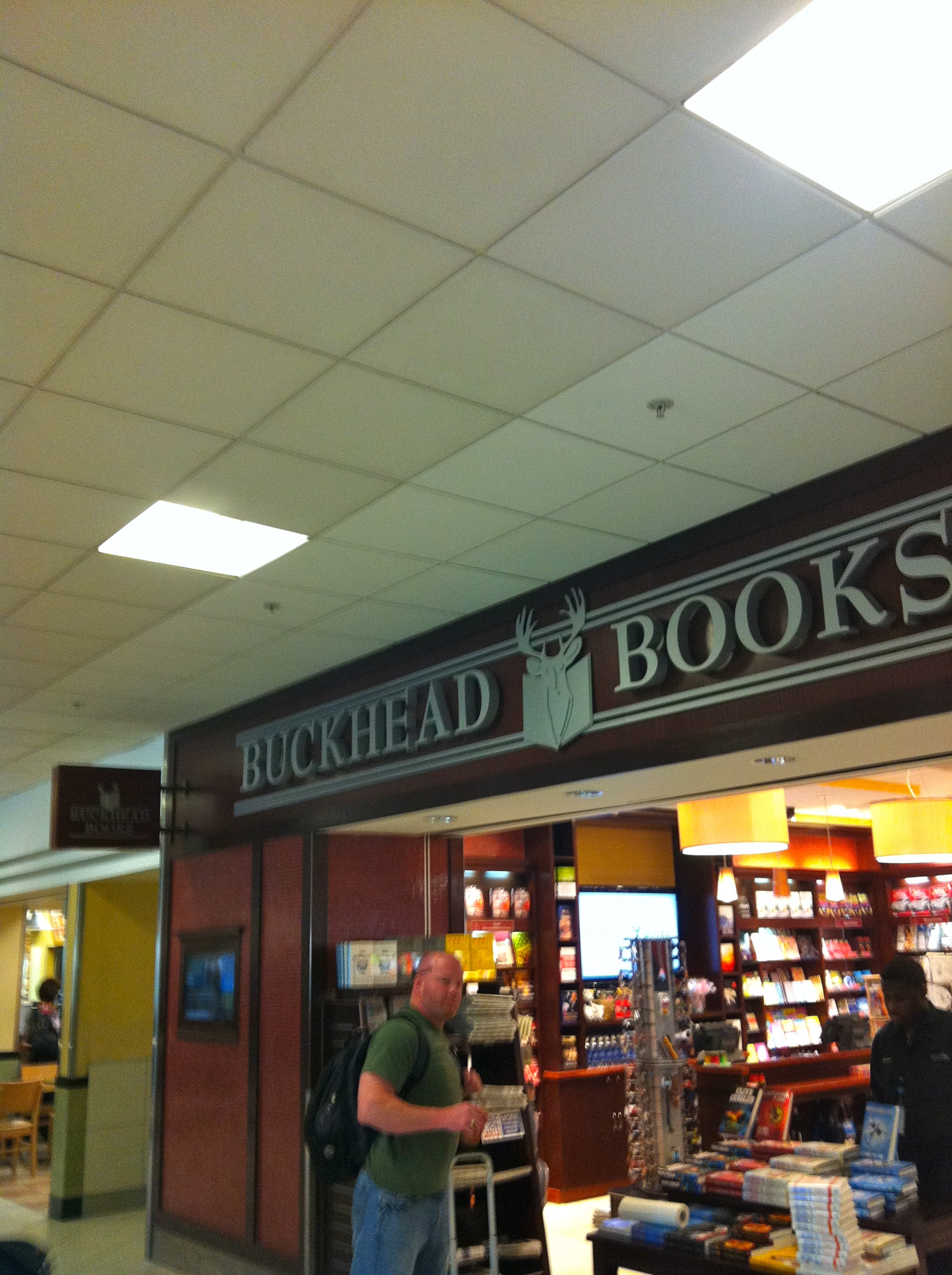 A short walk and a tram ride later, followed by a long walk, I made it to the gate where the flight to Charleston was departing. Atlanta’s a cool airport with great shops and some nice restaurants. See the bookstore?