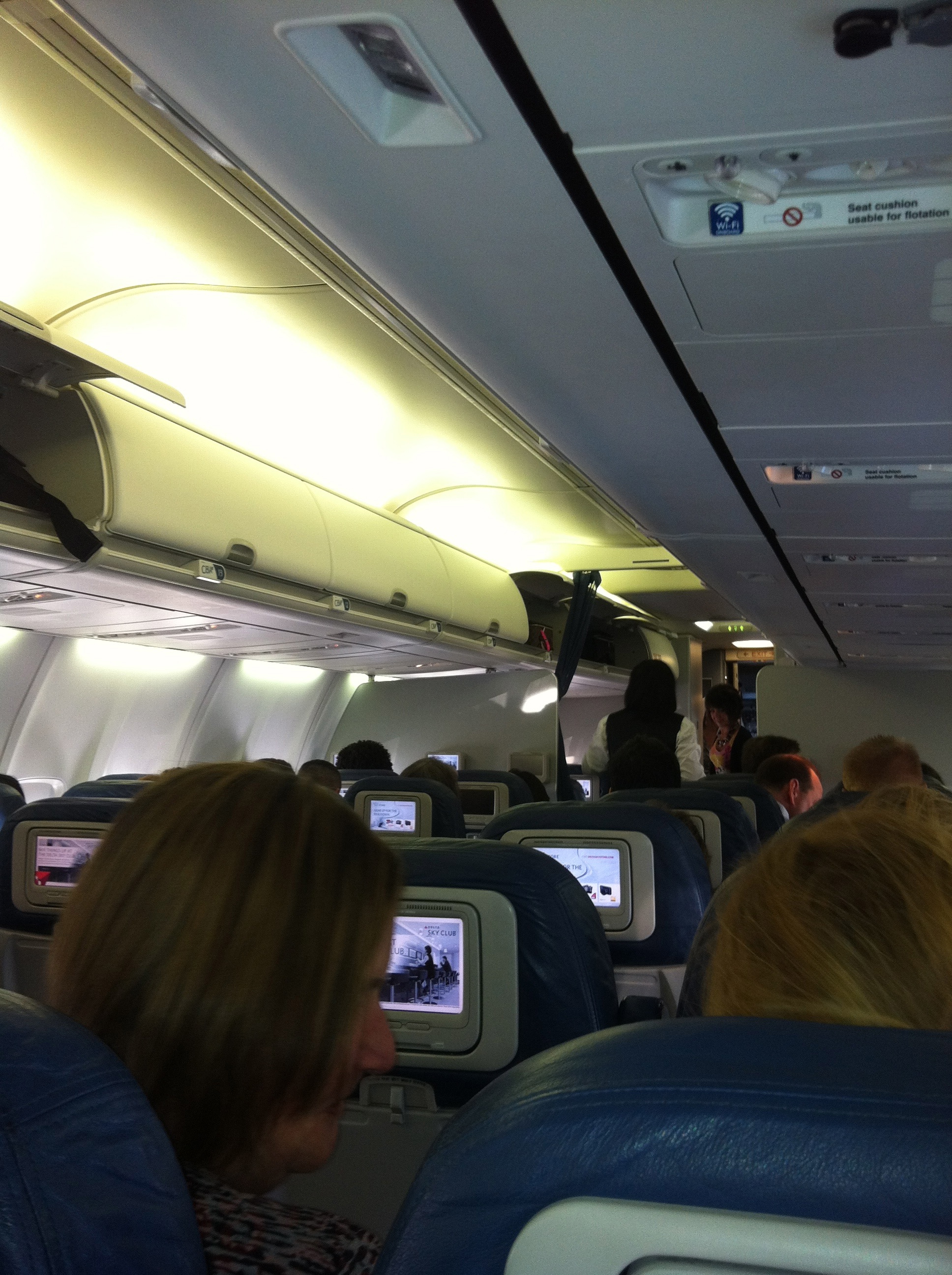 Yup. All dressed up and nobody to check me in. Finally, the gate agents arrived at 4:30 and I was whisked through and set out for security and the gate. Naturally, the first flight was full, but I made it on the 6:45 to Atlanta: