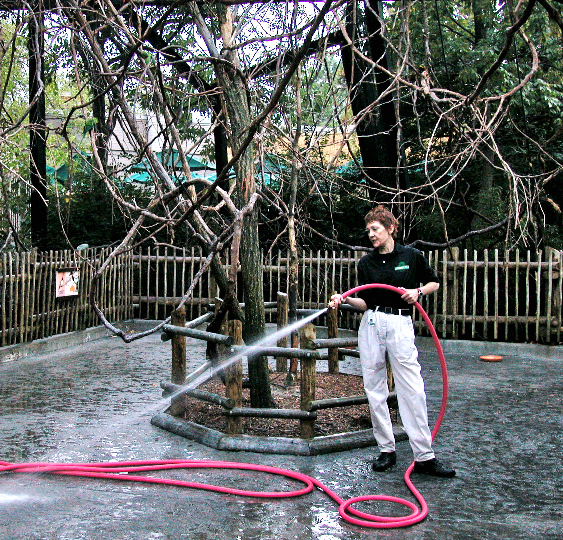 As Chris said, it takes more staff hours to clean up after cockatoos and macaws, the 25:1 is an average for us. We are constantly working to find better solutions for the birds and for our husbandry. Our new macaw flight has been designed for ultimate ease of cleaning, as well as comfort and safety of the birds. Each bird will have an individual indoor/outdoor flight cage. The inside has FRP on the walls so that they can be easily hosed and scrubbed. The outdoors will have 2 1/2 feet of pea gravel. With our sandy environment, the pea gravel acts as a great french drain. That should cut down on our macaw cleaning time dramatically, as well as greatly enhance their quality of life.