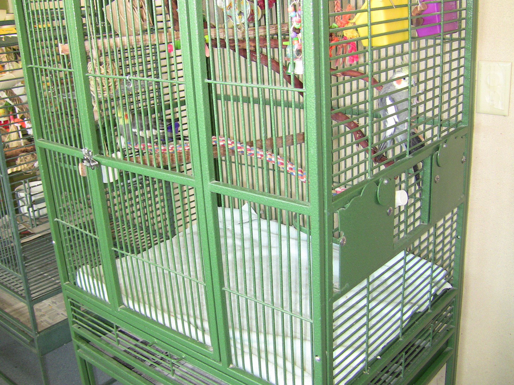 I also agree about flights being easier to clean than single cages.My cockatiels have a flight cage and it is much eaiser to clean IMO and since its a flight they get more room to play,they get to interact with eachother and are happier living in a small community than being in regular a cage alone so its a win-win situation for them and myself.My two doves also have a flight cage and they love it.I love it too because doves are pretty darn messy,it’s far easier to clean the poop off linoleum flooring than scraping it off the grate every day.