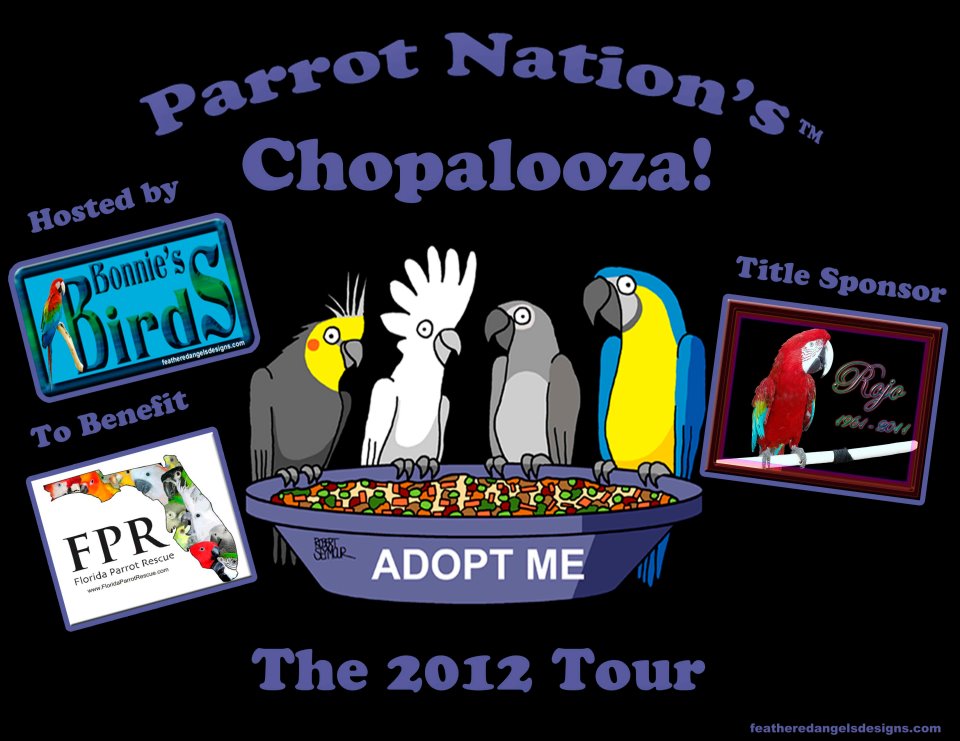 Chris emailed me back and said the most of the FPR families are on the West coast of Florida and it might be a better idea to do this over there. He suggested I contact Bonnie’s Birds in Port Charlotte and maybe I could make it over there in their store. So Chris and Bonnie Grafton and I started throwing ideas around in a Facebook group email. Rebecca Stockslager, Bonnie’s business partner joined the discussion and one by one other people were dragged into the fray including Janet Holt Hilton, and The Directors the FPR. From this online scrum, The idea of “Chopalooza” was hatched.