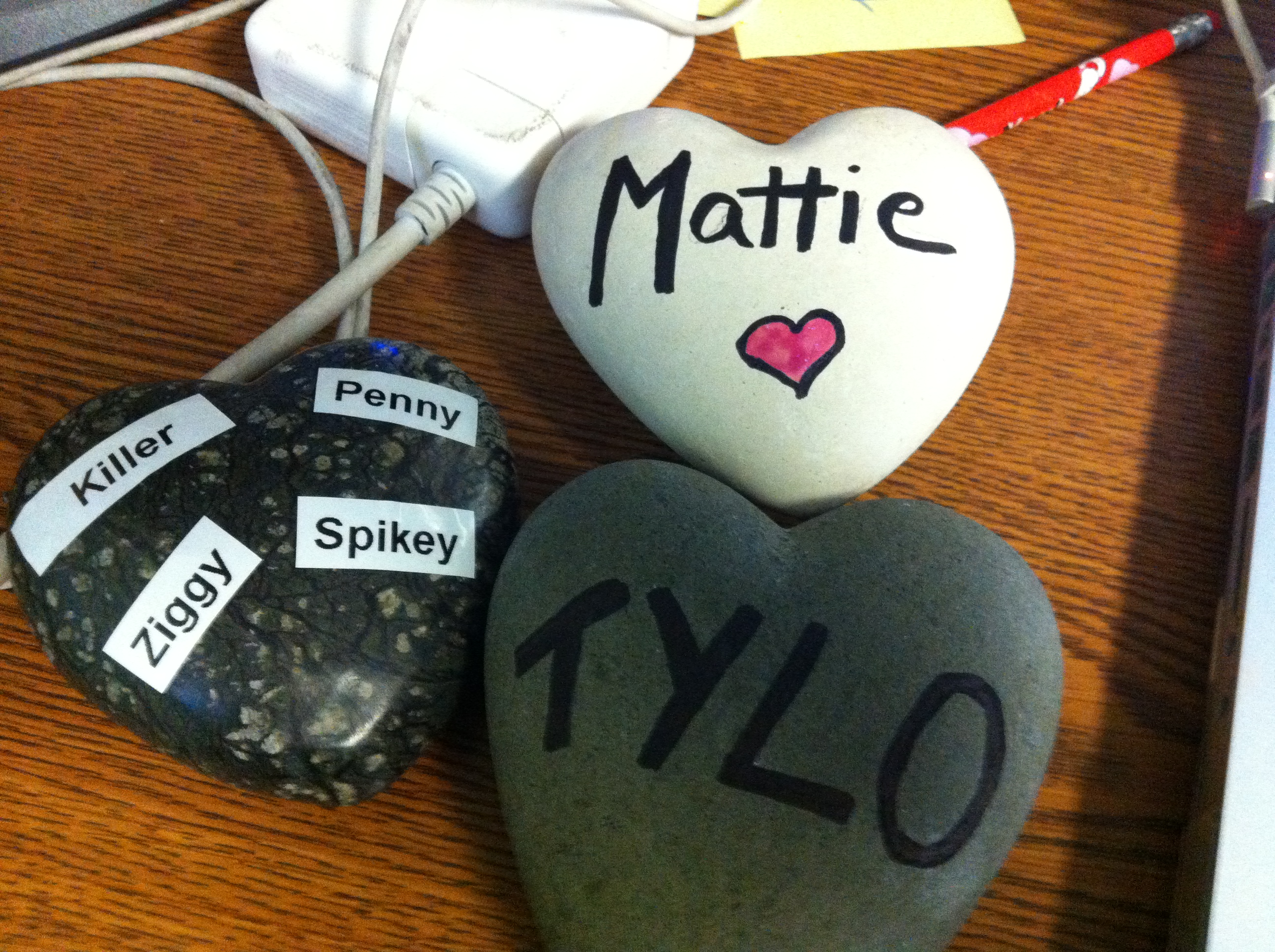 Unfortunately, the Parrot Garden lost a lttle 30 year-old Quaker a couple of days ago, so we will be attending Spock’s placement this morning. I had some requests to lace some Memory Stones for some Birds at Angels Nest. Amy Huq and Ann Cordova lost some birds a while back and wanted me to do this for them. So I had to prep the stones. I am also placing a stone for Mattie, my little dog I lost a year ago. She was one of the few dogs ever to have her photo in BIRD TALK Magazine so her stone is going into Angels Nest as well. It was a little rough working on her stone, but I think the stones came out nicely: