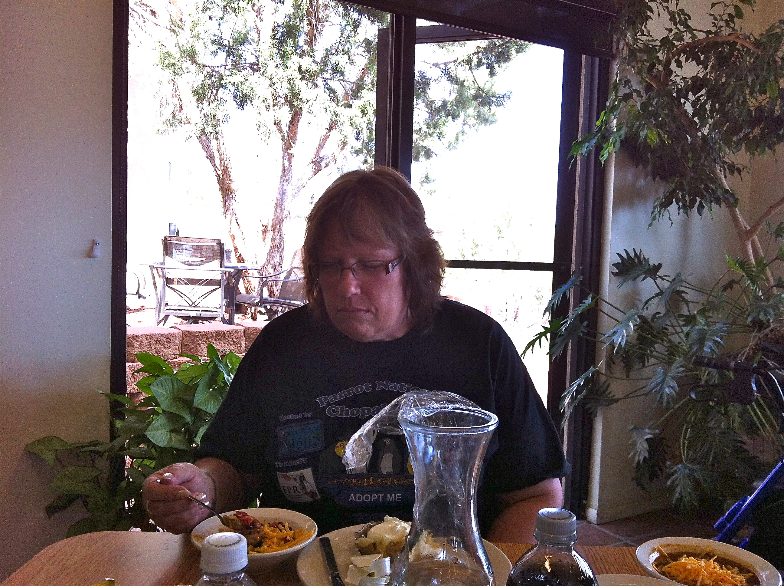 I’m back at the house now and no sign of Janet. She went to see the Grand Canyon today, so I think she’ll miss Wendy’s party. Wendy works at the Parrot Garden and I hear she’s a hell of a cook. It’s a party for her son, Vincent who had a birthday today. Bonnie, Kelly and I are attending. If I can manage to stay awake after the party, I might be able to tell you another story. If not, I’ll catch you in the morning. Thanks for flying by!