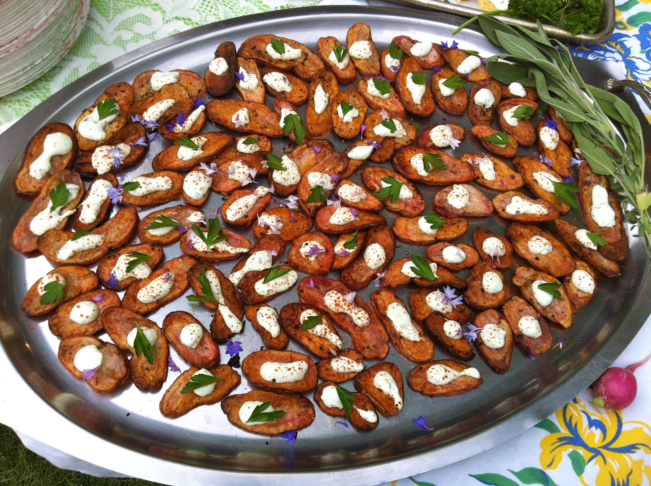 Fabulous homegrown fingerling potato chips with an amazing dip. I had about 15 of them.