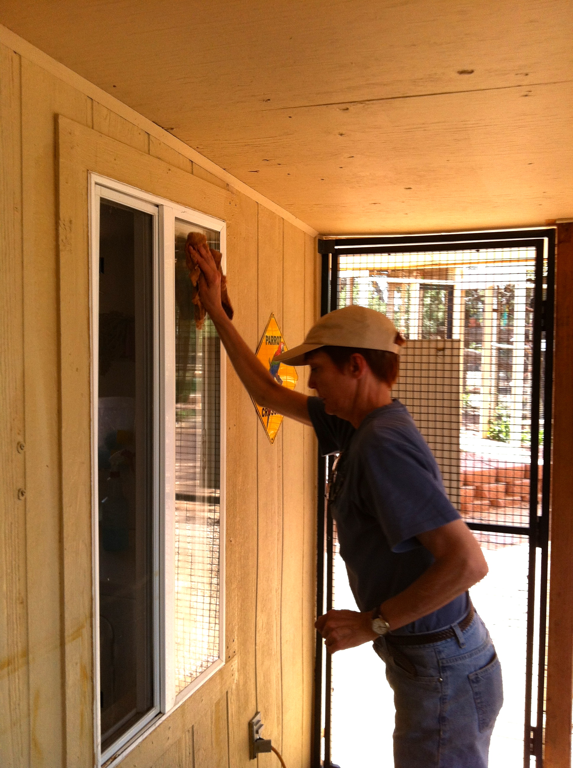 When I was deep cleaning at Best Friends Parrot Garden, overall, it was a big job because it’s a big place with lots of birds. Best Friends is one of the cleanest adoption centers I’ve ever seen. The daily cleaning routine at the Parrot Garden is meticulous.