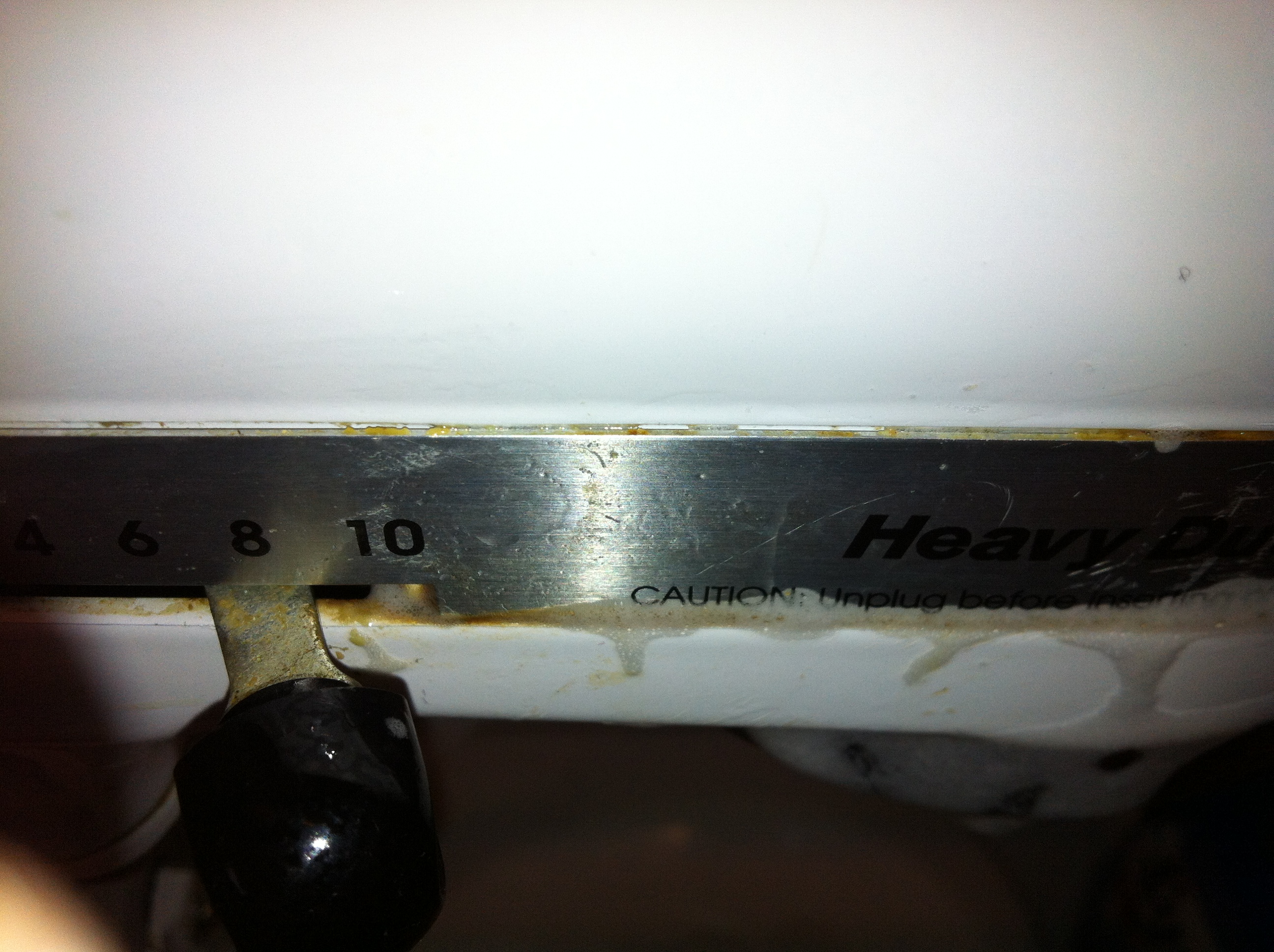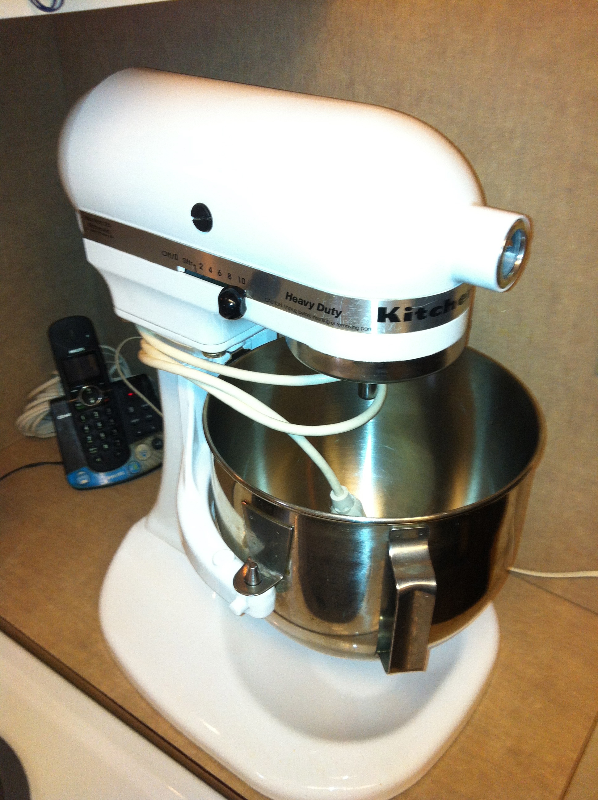One thing to keep in mind when you’re cleaning. Don’t simply”spray and wipe.” You have to give your cleaner or soap a chance to work. Give it time. Let it sit there and do its magic for a few minutes. And with my mixer, I did just that. It had dried crap on it and grunge in the seams which I managed to remove by letting the cleaner sit on the seams and then using the dull side of a knife wrapped in a cloth to make it grunge-free and shiny. But this was what it looked like in a spot with cleaner doing its thing before I wiped it down and detailed it: