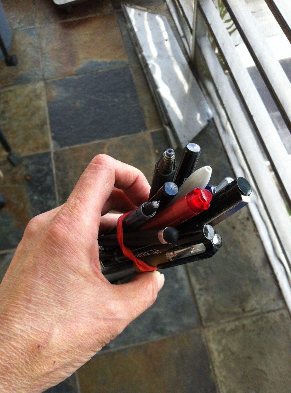 The having a lot of pens is a no-brainer. For one thing, I’m a writer. Not having a pen is like being in a horror movie. To me it’s the worst Twilight Zone episode ever. When I was a kid, we had a lot of pencils around, but my Mom for some reason, thought it was perfectly reasonable for each person to have one pen in the house. And you were supposed to use the pen until it went dry. This lack of “pen-age” made me a little panic-stricken about having pens.